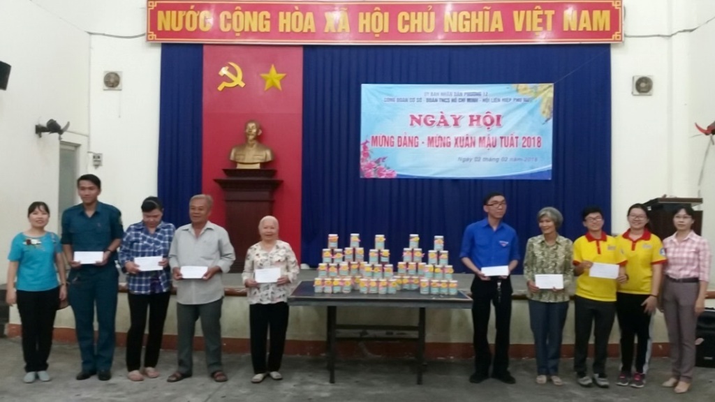 Nhằm phát huy tinh thần đoàn kết, tương thân tương ái trong Cán bộ, công chức, công đoàn viên Ủy ban nhân dân phường 12 góp phần cùng Đảng ủy, Hội đồng Nhân dân, Ủy ban Nhân dân, Ủy ban Mặt trận Tổ Quốc Việt Nam phường 12 trong công tác chăm lo tết Nguyên đán Mậu Tuất 2018 cho người dân nghèo có hoàn cảnh khó khăn trên địa bàn phường với phương châm “không để hộ nghèo không có điều kiện đón Xuân”.