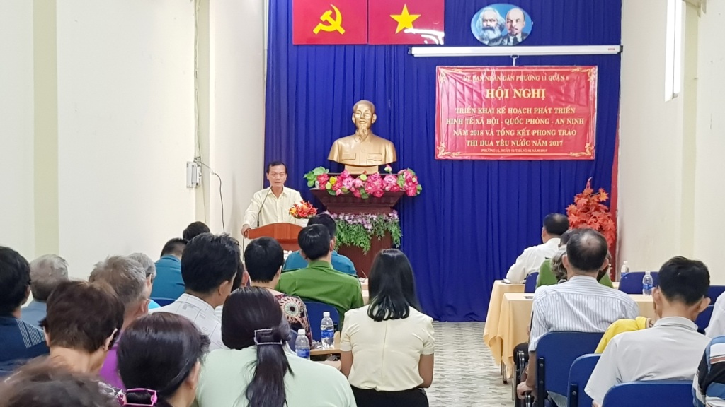 Chiều ngày 12 tháng 2 năm 2018 (27ÂL), Ủy ban nhân dân phường 11 đã tổ chức Hội nghị Triển khai kế hoạch phát triển kinh tế xã hội – Quốc Phòng – An ninh năm 2018 và tổng kết phong trào thi đua yêu nước năm 2017.