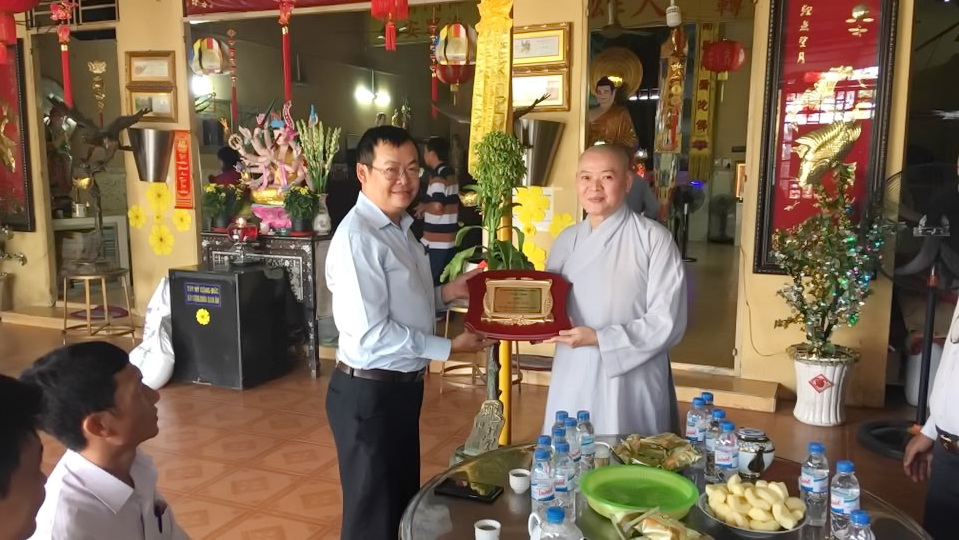 Ông Phạm Quang Tú – Quận ủy viên, Phó Bí thư Đảng ủy, Chủ tịch Ủy ban nhân dân Phường 15 thăm, tặng quà và chúc mừng Ni sư Thích nữ Huệ Tuyến nhân dịp Tết Nguyên đán Mậu Tuất năm 2018
