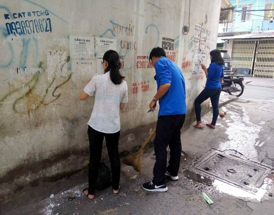 Trong công tác chuẩn bị cho ngày tết cổ truyền của dân tộc chào Xuân Mậu Tuất, sáng ngày 10 - 11/02/2018 Chi Đoàn 3 khu phố Phường 11 Quận 8 phối hợp cùng Đoàn thanh niên phường tổ chức ra quân xóa quảng cáo rao vặt và quét dọn vệ sinh trên các tuyến đường Phong Phú – Ưu Long – Tùng Thiện vương thuộc địa bàn phường 11 và khu vực Rạch U Cây. Tham gia hoạt động dọn dẹp tổng vệ sinh môi trường có trên 20 bạn là đoàn viên thanh niên của 3 chi đoàn khu phố.