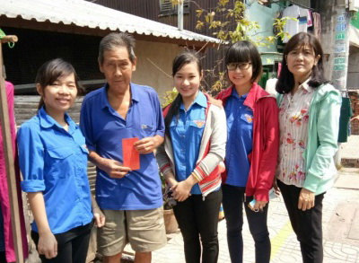 Đoàn thanh niên Phường 11 trao tặng 14 bao lì xì đến từng nhà cho các cụ già neo đơn trên địa bàn phường.