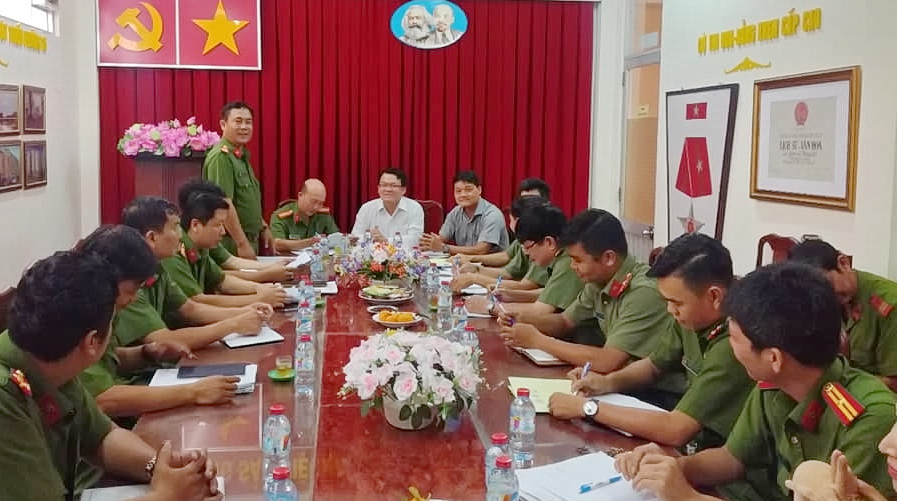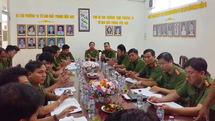 đồng chí Thiếu tá Phan Thanh Bình, Phó Trưởng Công an Quận 8; đồng chí Lê Minh Thông, Quận ủy viên, Bí thư Đảng ủy; đồng chí Nguyễn Thành Nam, Phó Bí thư, Chủ tịch Ủy ban nhân dân Phường 16 dự hội nghị