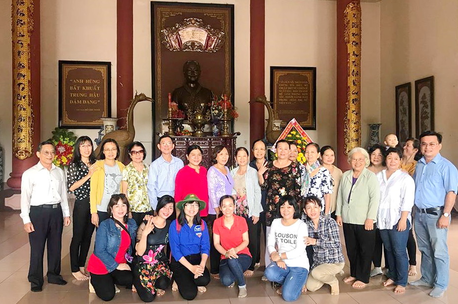 Lãnh đạo và nhân dân Phường 3 chụp ảnh lưu niệm trước đền thờ nữ tướng Nguyễn Thị Định.