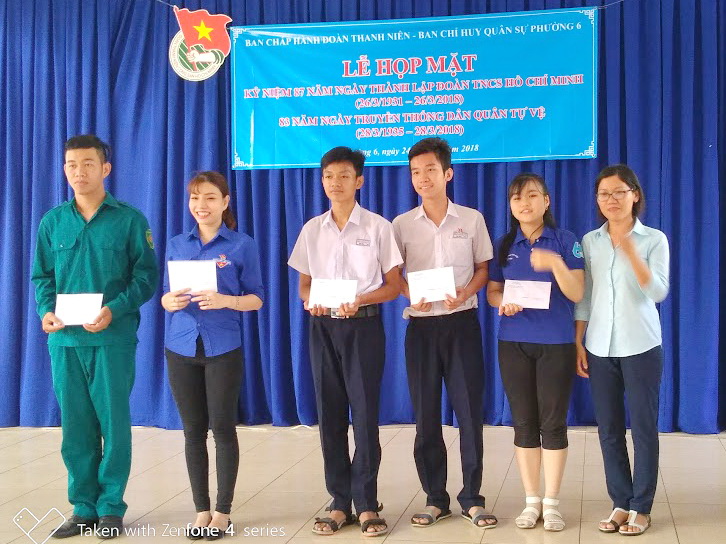 Ngày 24/3, Ban Chấp hành Đoàn thanh niên Phường 6 đã tổ chức họp mặt nhân kỷ niệm 87 năm ngày thành lập Đoàn thanh niên Cộng sản Hồ Chí Minh (26/3/1931 - 26/3/2018). Đến dự buổi họp mặt có các đồng chí: Ngô Quang Liêm, Phó Trưởng Ban Tuyên giáo Quận ủy; Nguyễn Quang Huy, Quận ủy viên, Bí thư Đảng ủy, Chủ tịch HĐND phường; Nguyễn Xuân Tuấn, Chủ tịch UBND phường; Vũ Thị Kim Dung, Đảng ủy viên, Phó Chủ tịch HĐND phường; Thái Trần Trọng Nghĩa, Đảng ủy viên, Chủ tịch Ủy ban MTTQ phường; Trang Hồng Châu, Chủ tịch Hội Cựu chiến binh phường; đại diện chi ủy các chi bộ và hơn 80 bạn đoàn viên, thanh niên, học sinh.