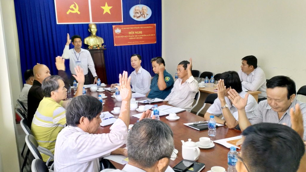 Chiều ngày 30 tháng 3 năm 2018, Ủy ban Mặt trận Tổ quốc Việt Nam Phường 6 đã tổ chức Hội nghị Ủy ban Mặt trận Tổ quốc lần thứ 19 nhiệm kỳ 2013 – 2018. Tham dự Hội nghị, về lãnh đạo quận, có ông Đinh Chí Thành – Phó chủ tịch Ủy ban Mặt trận Tổ quốc Việt Nam Quận 8; về lãnh đạo phường 6, có ông Võ Đoàn Thư – Đảng ủy viên, Phó chủ tịch Ủy ban nhân dân Phường 6, ông Thái Trần Trọng Nghĩa – Đảng ủy viên, Chủ tịch Ủy ban Mặt trận Tổ quốc Việt Nam Phường 6, Chủ trì hội nghị cùng các vị Ủy viên Ủy ban Mặt trận Tổ quốc Việt Nam Phường 6 và Ban Công tác Mặt trận 6 khu phố tham dự.