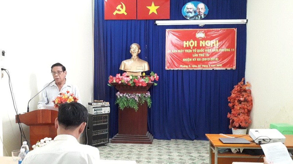 Chiều ngày 30 tháng 03 năm 2018, tại hội trường Ủy ban nhân dân phường 11, Ủy ban Mặt trận Tổ quốc Việt Nam Phường 11 đã tổ chức Hội nghị Ủy ban Mặt trận Tổ quốc Việt Nam Phường 11 lần thứ 19 nhiệm kỳ (2013 – 2018).