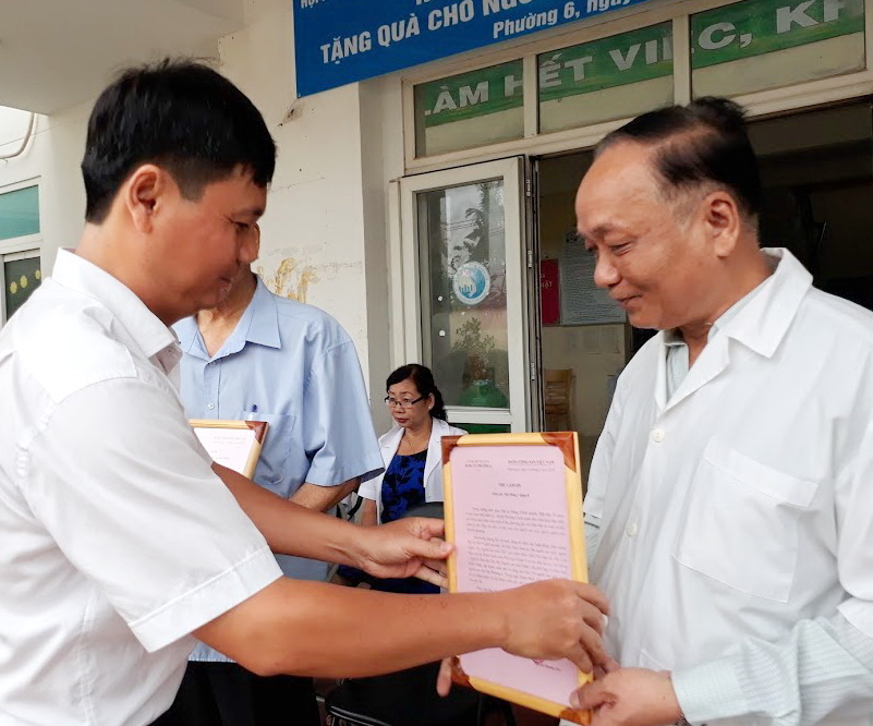 Ông Nguyễn Quang Huy, Bí thư Đảng ủy Phường 6 trao thư cảm ơn cho các mạnh thường quân