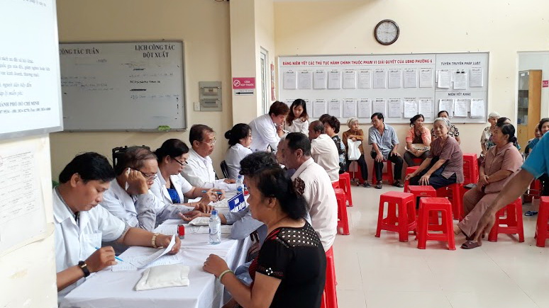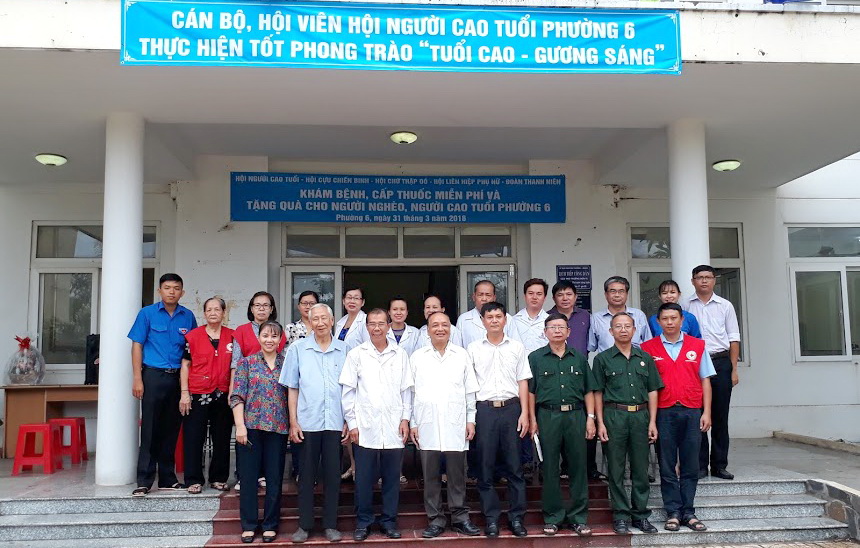 Hòa trong không khí cả nước đang tổ chức các hoạt động chào mừng Đại hội Hội Người cao tuổi, để thiết thực chăm lo cho người cao tuổi, người nghèo, Hội Người cao tuổi, Hội Cựu chiến binh, Hội Chữ thập đỏ, Hội Liên hiệp phụ nữ, Đoàn thanh niên Phường 6 Quận 8 và các nhà tài trợ: Hội Đông y Quận 8, Ban đại diện Hội Người cao tuổi Quận 1 đã phối hợp tổ chức ngày khám bệnh, cấp thuốc miễn phí và tặng quà cho 150 người cao tuổi, người nghèo trên địa bàn Phường 6 với tổng kinh phí 50 triệu đồng. Đến tham dự buổi khám bệnh có: ông Vương Liêm, Trưởng Ban đại diện Người cao tuổi Quận 1; bà Tào Ngọc Hạnh, Phó Trưởng Ban đại diện Người cao tuổi Quận 1; ông Trang Hồng Châu, Chủ tịch Hội Đông y Quận 8; ông Lê Văn Hải, Ủy viên Ban Thường vụ Hội Đông Quận 8; ông Nguyễn Quang Huy, Quận ủy viên, Bí thư Đảng ủy Phường 6; bà Vũ Thị Kim Dung, Đảng ủy viên, Phó Chủ tịch HĐND Phường 6; ông Võ Đoàn Thư, Đảng ủy viên, Phó Chủ tịch UBND Phường 6; ông Thái Trần Trọng Nghĩa, Đảng ủy viên, Chủ tịch Ủy ban MTTQ Phường 6 và các vị lương y, bác sĩ, dược sĩ thuộc Hội Đông y Quận 8.