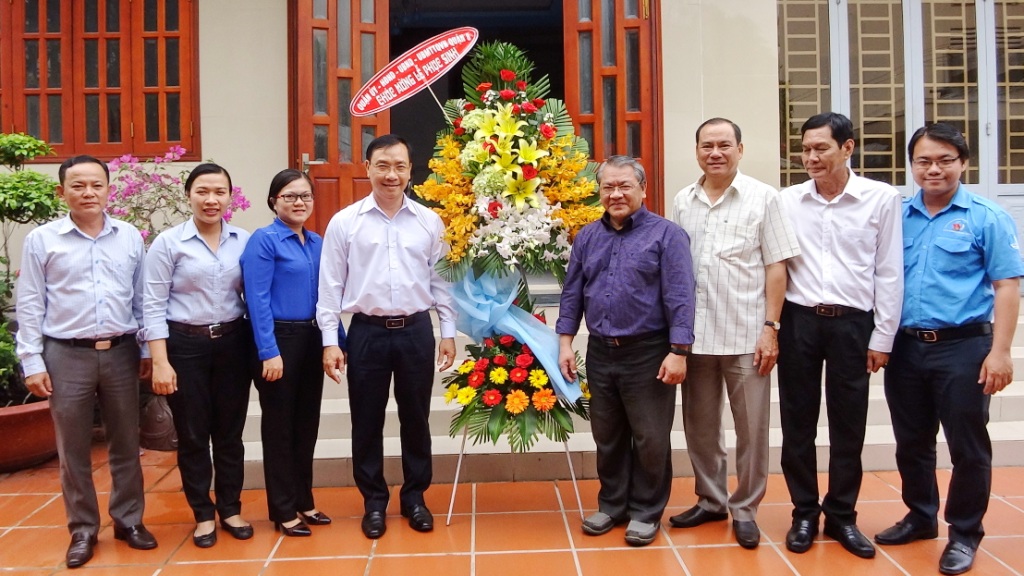 Ông Ngô Thành Tuấn - Bí thư Quận ủy Quận 8 tặng hoa chúc mừng Linh mục Trịnh Văn Viễn - Chánh xứ Bình An.