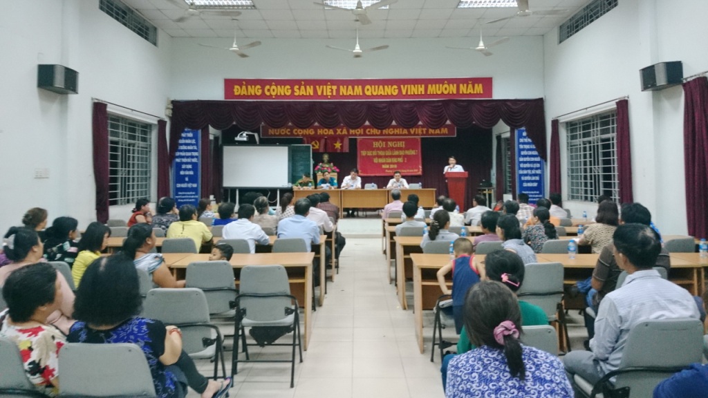 Tối ngày 02 tháng 04 năm 2018 tại Hội trường Trường Trung học cơ sở Bình An. Lãnh đạo phường 7 tiếp xúc đối thoại với nhân dân khu phố 2.
