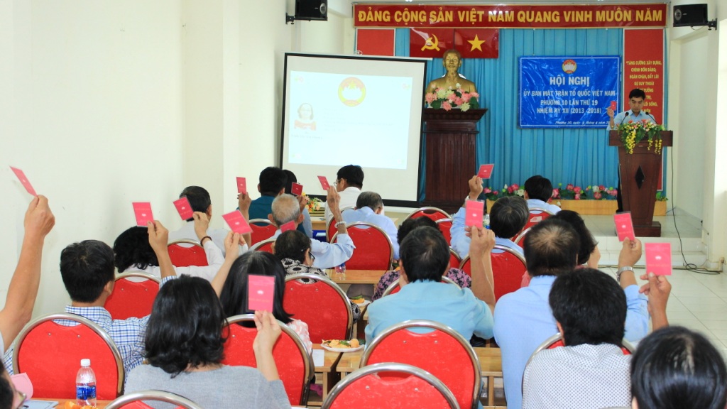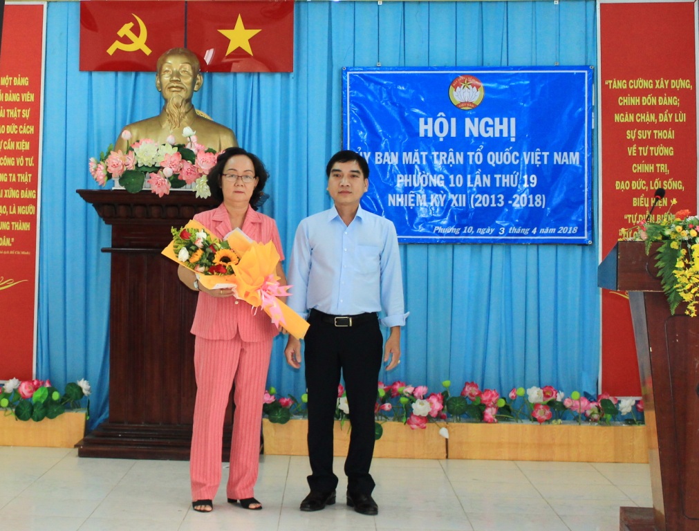 Chiều ngày 03/04/2018, Ủy ban Mặt trận Tồ quốc Việt Nam Phường 10 tổ chức Hội nghị lần thứ 19 (nhiệm kỳ 2013-2018). Đến tham dự Hội nghị có Ông Lưu Thanh Nhã, Phó Bí thư Thường trực Đảng ủy Phường 10; Bà Lê Nguyễn Phương Nga, Phó Bí thư - Chủ tịch Hội đồng nhân dân Phường 10; Ông Lương Vĩnh Cường, Đảng ủy viên - Phó Chủ tịch Ủy ban nhân dân Phường 10; Ông Nguyễn Vĩnh Tiến, Đảng ủy viên - Chủ tịch Ủy ban Mặt trận Tổ Quốc Việt Nam Phường 10 và các vị Ủy viên Ủy ban Mặt trận Tổ Quốc Việt Nam Phường 10.