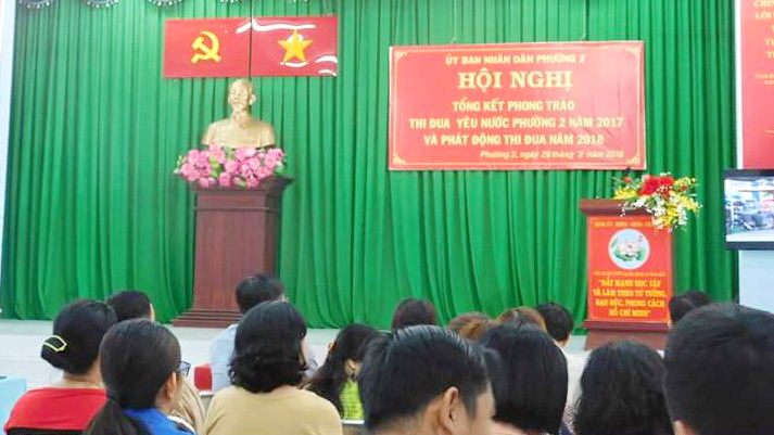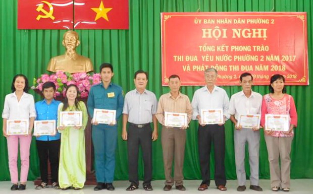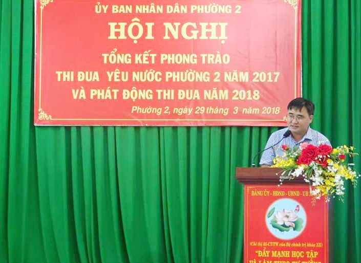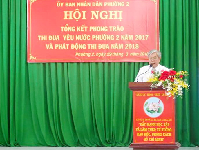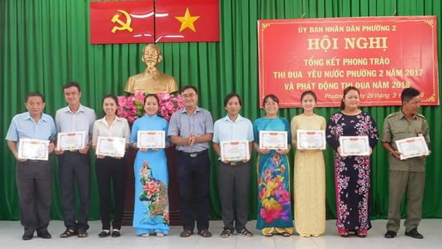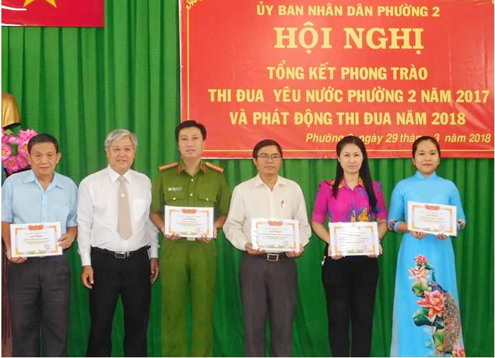 Thực hiện lời dạy của Bác: “Thi đua là yêu nước, yêu nước thì phải thi đua, những người thi đua là những người yêu nước nhất”. Trên cơ sở đó, các phong trào thi đua năm 2017 của Phường 2 luôn được gắn với việc học tập và làm theo tấm gương đạo đức, phong cách Hồ Chí Minh, thực hiện tốt nhiệm vụ chính trị, xây dựng Đảng, chính quyền, đoàn thể, cơ quan, đơn vị trong sạch vững mạnh. Do đó, để đánh giá kết quả thực hiện phong trào thi đua yêu nước năm 2017, vào lúc 08 giờ ngày 29 tháng 3 năm 2018, Đảng ủy - Ủy ban nhân dân Phường 2 tổ chức Hội nghị tổng kết phong trào thi đua yêu nước năm 2017. Tham dự hội nghị có ông Lê Văn Hậu - Quận ủy viên, Bí thư Đảng ủy, Chủ tịch HĐND phường; ông Nguyễn Văn Thanh - Phó Bí thư Thường trực Đảng ủy phường; ông Hồ Thanh Bình - Phó Bí thư Đảng ủy, Chủ tịch UBND phường; ông Lê Thanh Tú - Ủy viên thường vụ Đảng ủy, Chủ tịch UB.MTTQ Việt Nam phường; bà Đoàn Thị Thanh Tuyền - Đảng ủy viên, Phó Chủ tịch UBND phường; đại diện các ban ngành đoàn thể, cán bộ công chức phường; đại diện Cấp ủy chi bộ, Trưởng 7 khu phố, 79 Tổ dân phố cùng các tập thể, cá nhân được khen thưởng.
