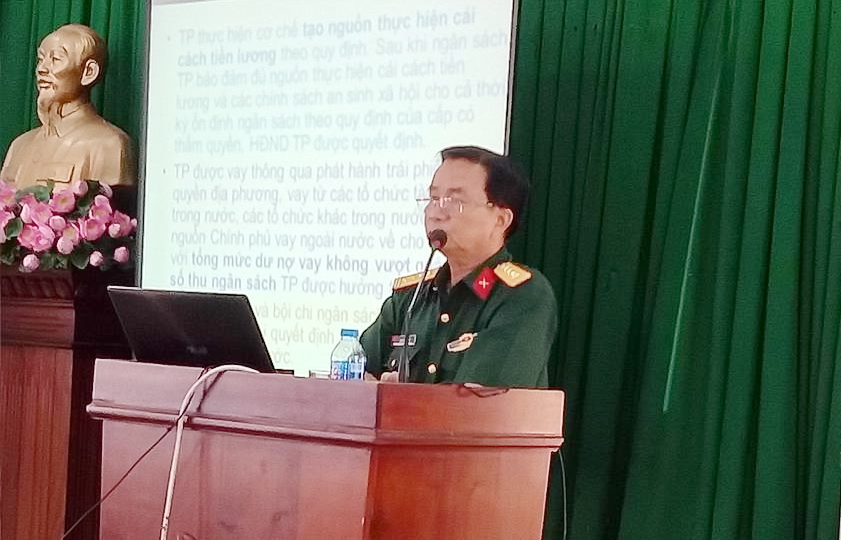 Đại tá Nguyễn Nhứt, Báo cáo viên Ban Tuyên giáo Trung ương báo cáo tại hội nghị