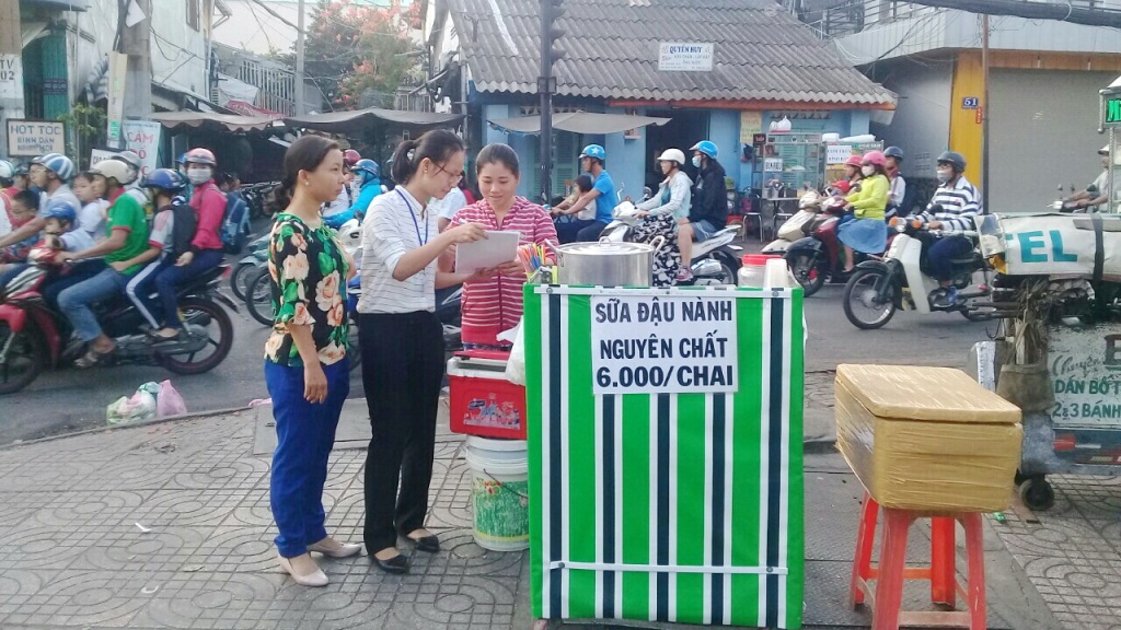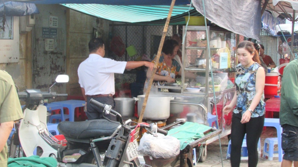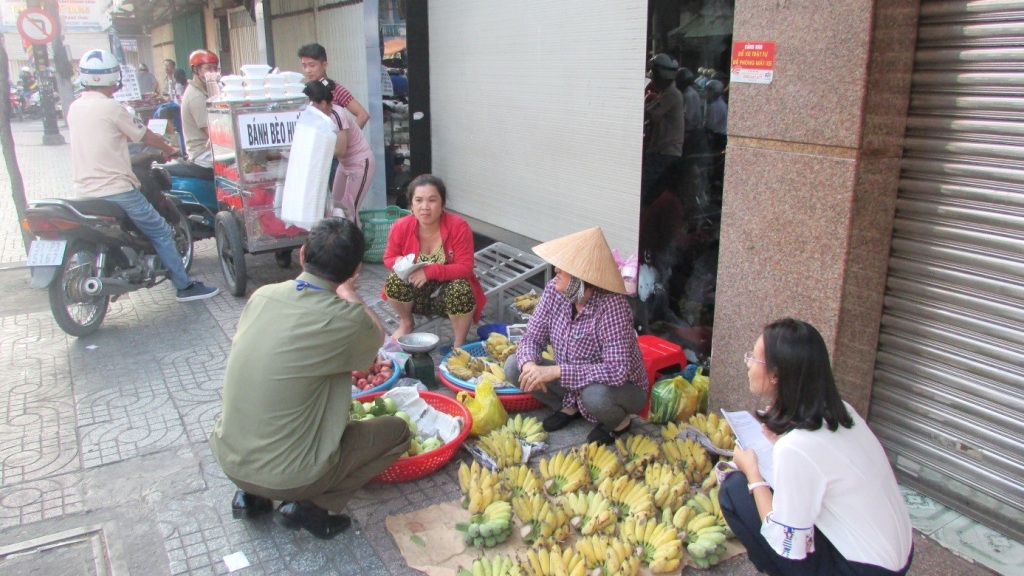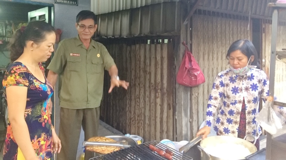 Ông Võ Văn Lộc – Chủ tịch UBND.MTTQ P12 tuyên truyền, vận động và nhắc nhở các hộ, cá nhân có hành vi vi phạm lấn chiếm lòng, lề đường, vỉa hè ở góc đường Nguyễn Duy – Cao Xuân Dục