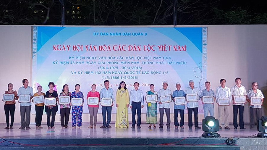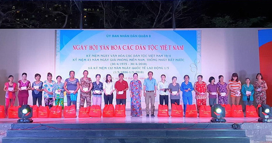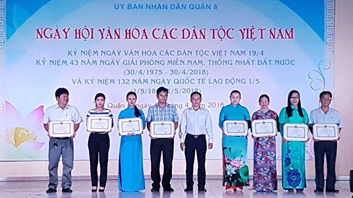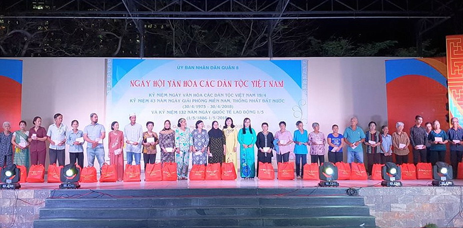 Trong những năm qua, Quận ủy - Hội đồng nhân dân - Ủy ban nhân dân - Ủy ban Mặt trận Tổ quốc Việt Nam, các đoàn thể Quận 8 luôn quan tâm thực hiện tốt các nội dung về công tác dân tộc, thực hiện đầy đủ các chủ trương, chính sách đối với đồng bào dân tộc thiểu số, tạo điều kiện thuận lợi cho đồng bào dân tộc thiểu số trên địa bàn cùng hòa nhập, bình đẳng trong sinh hoạt, lao động, học tập, giữ gìn bản sắc văn hóa truyền thống của dân tộc, cùng hướng đến mục tiêu xây dựng khối đại đoàn kết toàn dân tại địa phương, góp phần xây dựng đất nước Việt Nam ngày càng giàu đẹp và phát triển. Ngày hội văn hóa các dân tộc Việt Nam Quận 8 năm 2018 là cơ hội giao lưu văn hóa, hiểu biết, gắn kết các dân tộc trên đất nước Việt Nam nói chung và trên địa bàn Quận 8 nói riêng; đồng thời phát huy nội lực của đông đảo các tầng lớp Nhân dân trong việc bảo tồn nền văn hóa dân tộc; bên cạnh đó tuyên dương nhân rộng các gương điển hình tiêu biểu trong cộng đồng các dân tộc, thể hiện tinh thần vượt khó, nỗ lực trong lao động và cuộc sống là những tấm gương tiêu biểu cho cộng đồng các dân tộc noi theo; trong Ngày Hội Ủy ban nhân dân Quận 8 đã khen thưởng 22 vị là người uy tín tiêu biểu, cùng 10 tập thể, 14 cá nhân có thành tích tốt trong thực hiện quản lý nhà nước về công tác dân tộc tại địa phương; đồng thời cũng đã trao tặng 50 suất quà nghĩa tình đến các hộ gia đình dân tộc có hoàn cảnh khó khăn trong cuộc sống nhằm động viên các hộ gia đình dân tộc thiểu số nỗ lực vươn lên trong cuộc sống, góp phần xây dựng Quận 8 ngày càng phát triển, văn minh, hiện đại, nghĩa tình./.