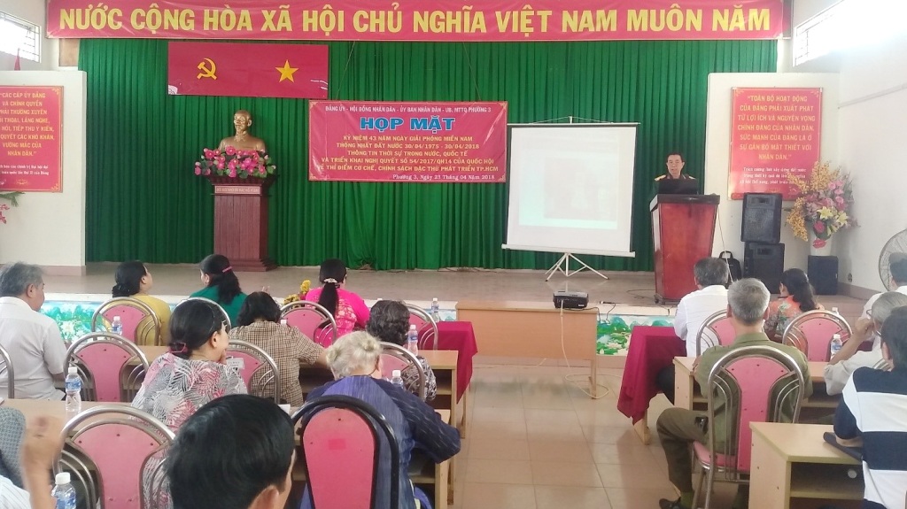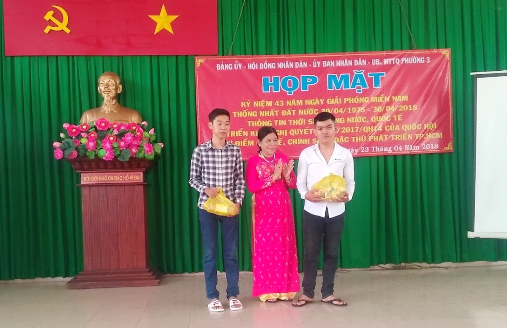 Sáng ngày 23 tháng 4 năm 2018 tại hội trường Ủy ban nhân dân Phường 3. Thực hiện kế hoạch 92 ngày 05/4/2018 của UBND Quận 8 về Tổ chức các hoạt động kỷ niệm các ngày Lễ lớn năm 2018. Phường 3 tổ chức họp mặt kỉ niệm 43 năm ngày giải phóng miền Nam thống nhất đất nước ( 30/4/1975 – 30/4/2018); kỷ niệm 128 năm ngày sinh Chủ tịch Hồ Chí Minh (19/5/1980 – 19/5/2018) và kỷ niệm 132 năm Ngày Quốc tế Lao động (01/05/1886 – 01/05/2018).