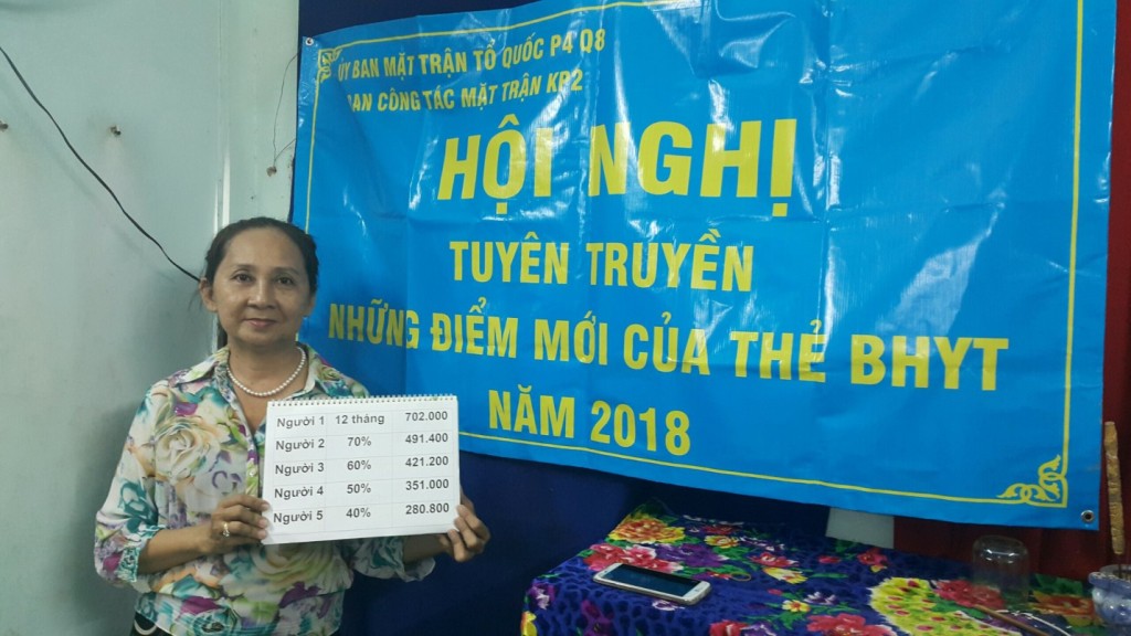 Tối ngày 25/04/2018 tại Điểm sinh hoạt khu phố2 Phường 4, Ban công tác Mặt trận Khu phố 2 Phường 4 Quận 8 đã tổ chức buổi tuyên truyền về những điểm mới của thẻ Bảo hiểm y tế năm 2018.