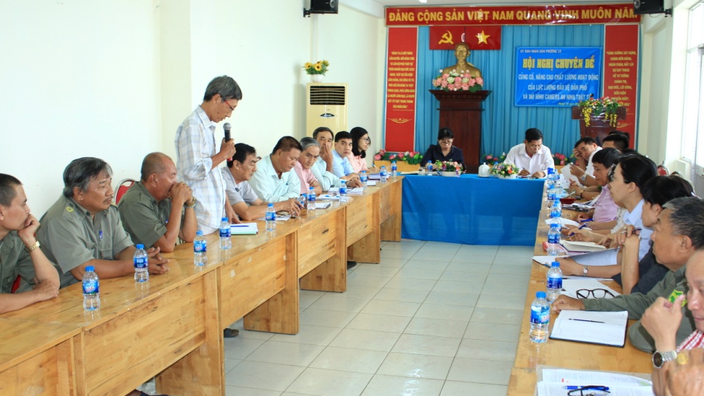 Hội nghị đã được nghe báo cáo đề dẫn về thực trạng hoạt động của lực lượng Bảo vệ dân phố và camera an ninh trật tự, các gợi ý để hội nghị tham gia thảo luận. Sau hơn 2 tiếng tham gia thảo luận sôi nổi, hội nghị đã ghi nhận được nhiều ý kiến phát biểu xoay quanh những vấn đề còn khó khăn, hạn chế trong quá trình hoạt động của lực lượng bảo vệ dân phố, cũng như quá trình đưa hệ thống camera an ninh đi vào hoạt động; phân tích những nguyên nhân chủ quan, khách quan trong quá trình hoạt động; hội nghị cũng được nghe các giải pháp, cách làm hay nhằm nâng cao chất lượng hoạt động trong thời gian tới.