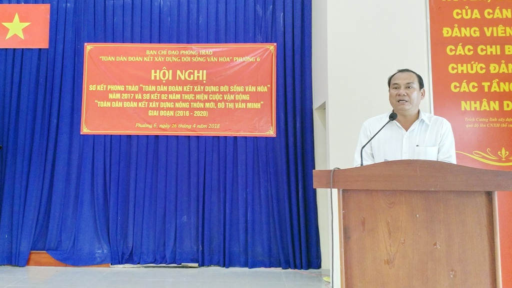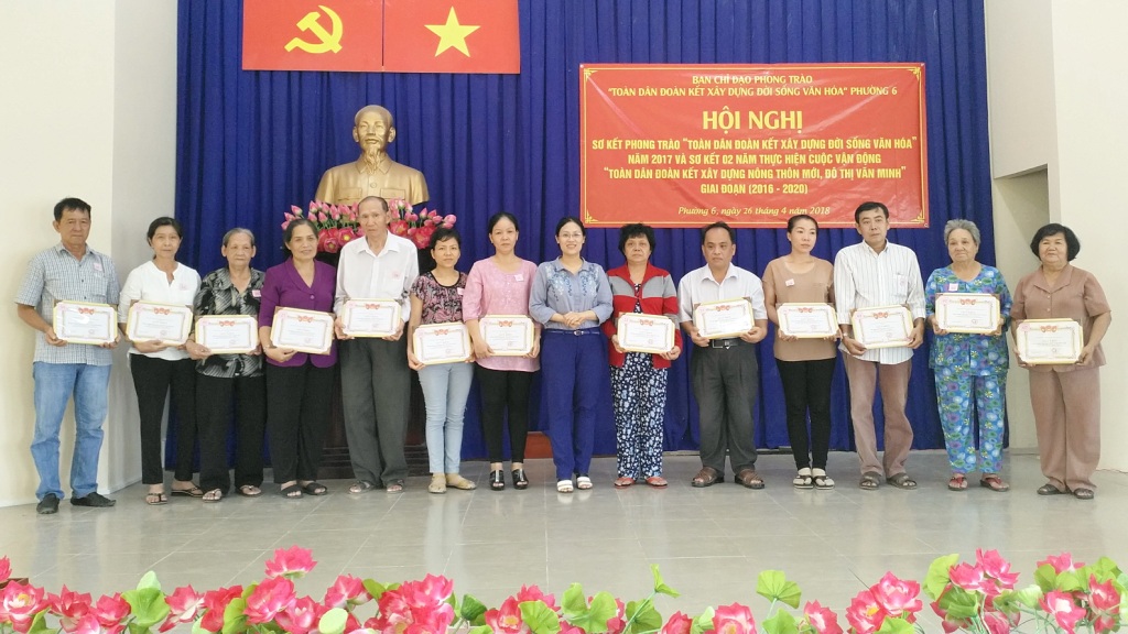 Ngày 26 tháng 4 năm 2018, Phường 6 đã tổ chức Hội nghị sơ kết phong trào “Toàn dân đoàn kết xây dựng đời sống văn hóa” năm 2017 và sơ kết 02 năm Cuộc vận động “Toàn dân đoàn kết xây dựng nông thôn mới, đô thị văn minh” giai đoạn 2016 – 2020.