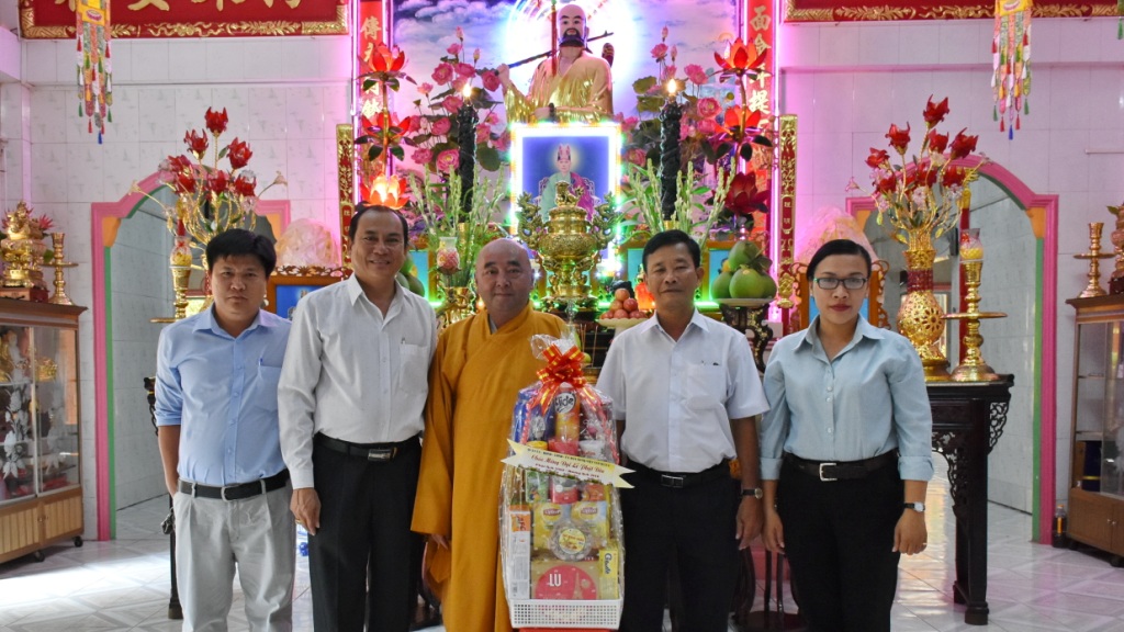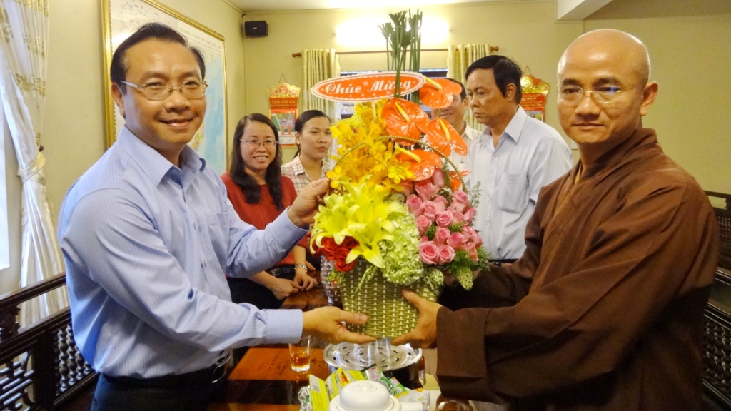 Ông Ngô Thành Tuấn - Bí thư Quận ủy, Chủ tịch HĐND Quận 8 thăm và tặng hoa Thượng tọa Thích Thiện Quý - Phó Trưởng Ban Trị sự Giáo hội Phật giáo Việt Nam TP. Hồ Chí Minh, Trụ trì Chùa Liên Hoa