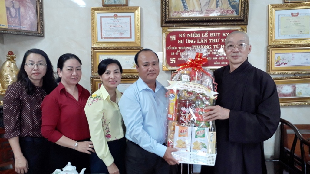 Ông Đỗ Hữu Trí - Phó Bí thư thường trực Quận ủy Quận 8 thăm và tặng quà Đại đức Thích Phước Thành - Chánh Văn phòng Ban Trị sự Giáo hội Phật giáo Việt Nam Quận 8, Trụ trì Chùa Phổ Đà Sơn.