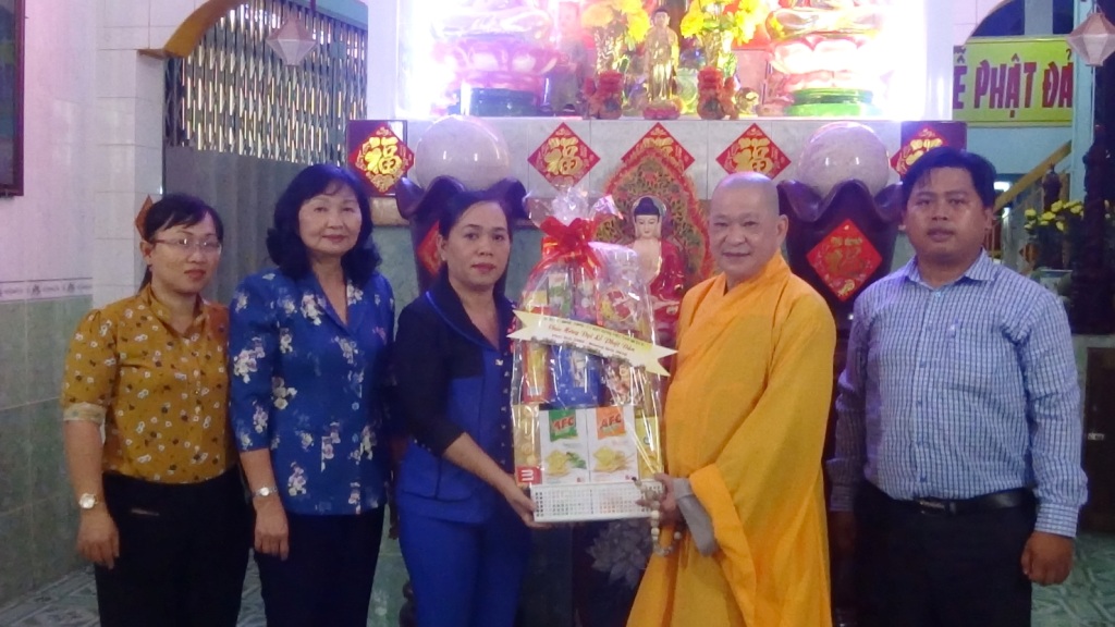 Bà Nguyễn Thanh Xuân - Phó Bí thư Quận ủy Quận 8 thăm và tặng quà Đại đức Thích Trí Trường - Trụ trì Chùa Lộc Dã.