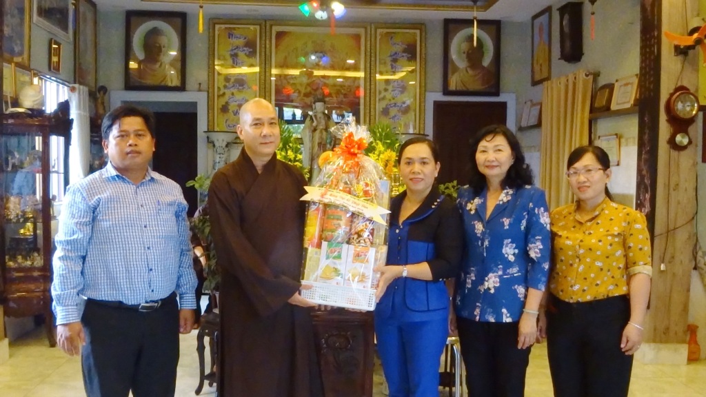 Bà Nguyễn Thanh Xuân - Phó Bí thư Quận ủy Quận 8 thăm và tặng quà Đại đức Thích Nguyên Nhựt - Phó Trưởng Ban Trị sự Giáo hội Phật giáo Việt Nam Quận 8, Trụ trì Chùa Long Vân.