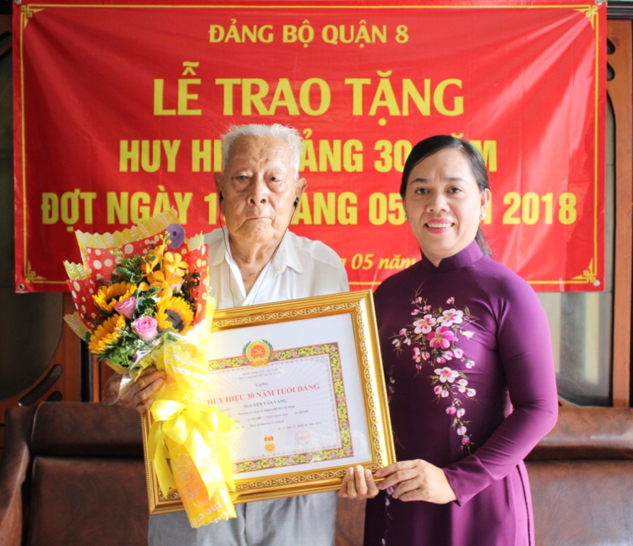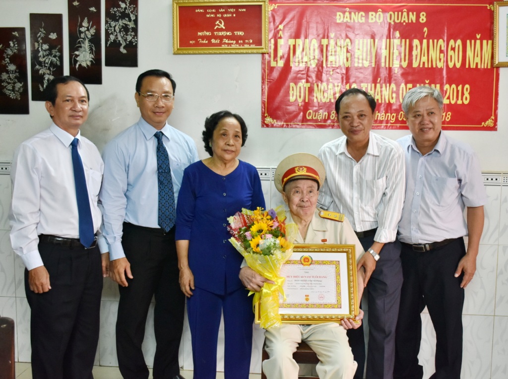 Ngày 15/5, Quận ủy Quận 8 đã tổ chức 3 đoàn công tác trao Huy hiệu Đảng tại nhà cho các đồng chí đảng viên cao tuổi đảng. Tham gia đoàn công tác có các đồng chí: Ngô Thành Tuấn, Bí thư Quận ủy; Trần Quang Thảo, Phó Bí thư Quận ủy, Chủ tịch Ủy ban nhân dân quận; Nguyễn Thanh Xuân, Phó Bí thư Quận ủy.