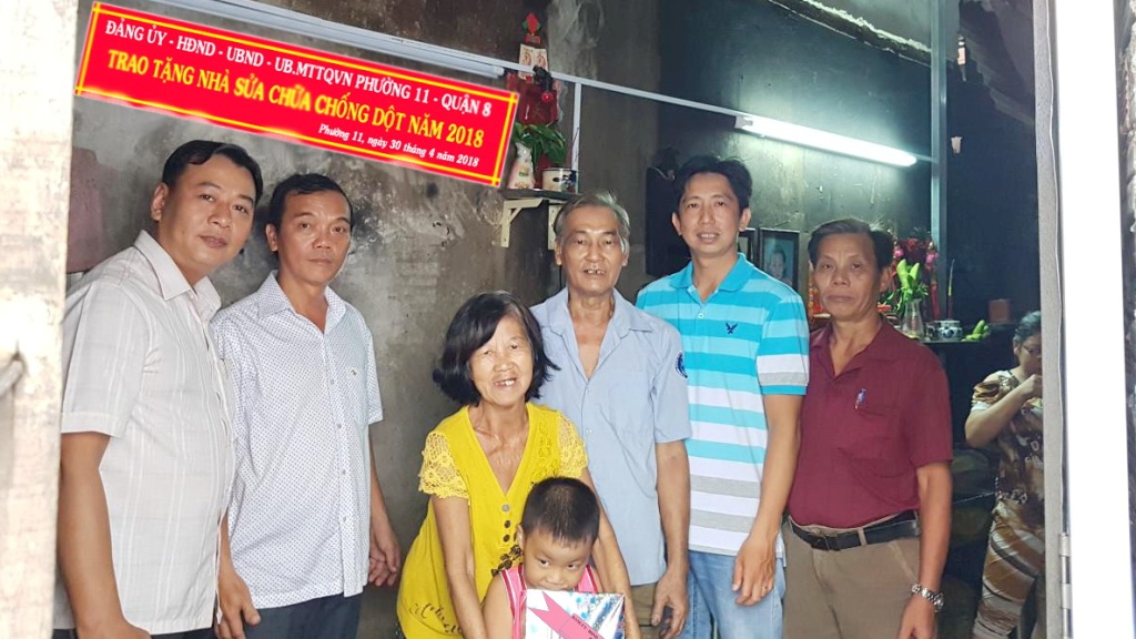 Trong ngày 30/4/2018, Đảng ủy – Hội đồng nhân dân - Ủy ban nhân dân – Ủy ban Mặt trận Tổ quốc phường 11 đã đến thăm và tặng quà 02 hộ gia đình sau khi đã hoàn thành sửa chữa chống dột.