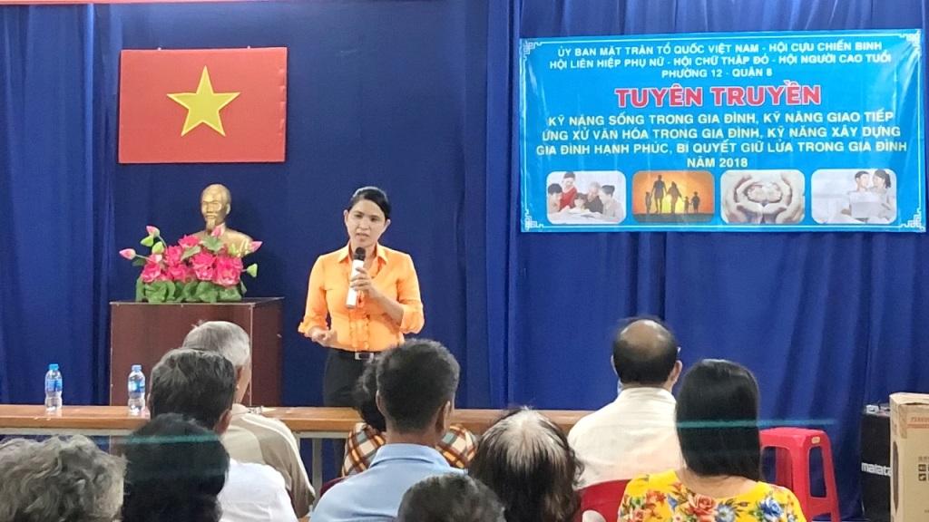 Được sự chấp thuận của Ban Thường trực Ủy ban Mặt trận Tổ quốc Việt Nam Quận 8, Thường trực Đảng ủy Phường 12. Vào lúc 19 giờ, ngày 10 tháng 5 năm 2018, Uỷ ban Mặt trận Tổ quốc Việt Nam Phường phối hợp cùng các đoàn thể tổ chức tuyên truyền kỹ năng sống trong gia đình, kỹ năng giao tiếp - ứng xử văn hóa trong gia đình, kỹ năng xây dựng gia đình hạnh phúc, bí quyết giữ lửa trong gia đình năm 2018.