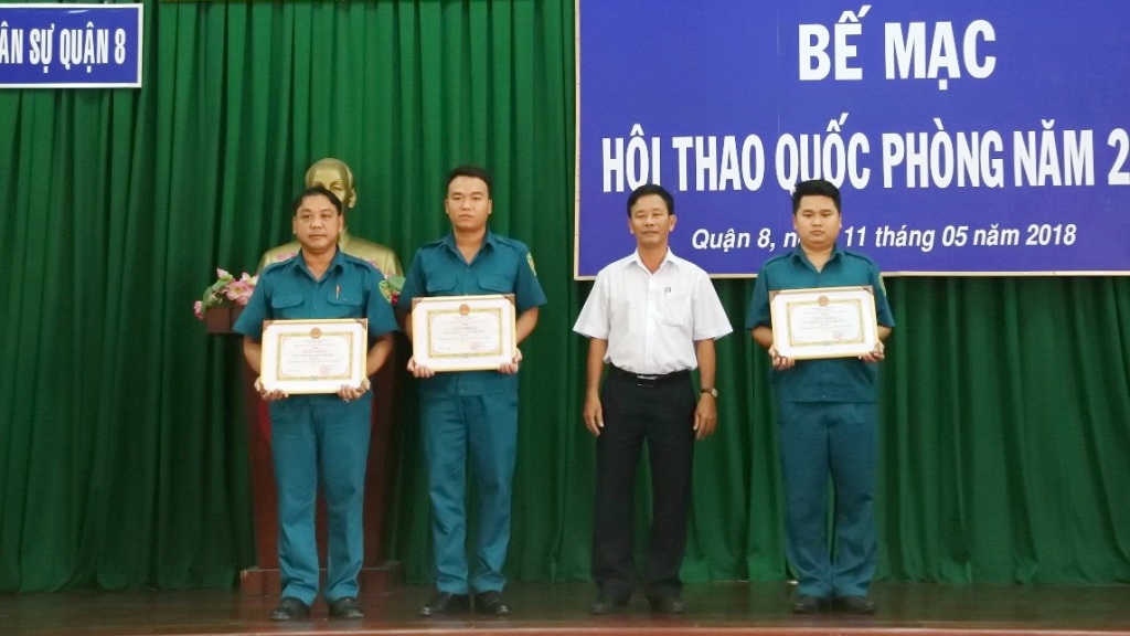 Dịp này, UBND Quận 8 tặng Giấy khen, cờ cho 03 tập thể đạt thành tích xuất sắc trong Hội thao Quốc phòng năm 2018 và Ban Chỉ huy quân sự Quận 8 khen thưởng cho 39 đơn vị đạt thành tích xuất sắc trong từng môn thi.