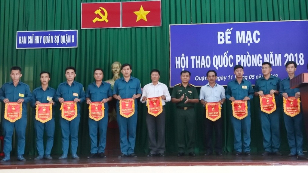 Chiều ngày 11/5/2018, Ban Chỉ huy Quận sự Quận 8 tổ chức Bế mạc Hội thao Quốc phòng năm 2018. Đến dự có đ/ c Trần Quang Thảo - Phó Bí thư Quận ủy, Chủ tịch Ủy ban nhân dân Quận 8; đ/c Nguyễn Thanh Sang - QUV, Phó Chủ tịch Ủy ban nhân dân Quận 8, Trưởng Ban Chỉ đạo Hội thao Quốc phòng Quận 8 năm 2018; đ/c Thiếu tá Nguyễn Thành Chung - Chỉ huy trưởng/Ban Chỉ huy Quận sự Quận 8; đại diện Ban Chỉ huy quân sự 16 phường; các đơn vị tự vệ tham gia Hội thao cùng các cán bộ, chiến sĩ, vận động viên đạt thành tích cao trong Hội thao Quốc phòng năm 2018.