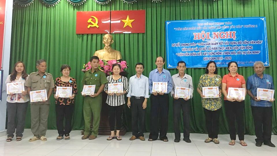 Cũng trong hội nghị sơ kết, Ban Chỉ đạo phong trào “Toàn dân đoàn kết xây dựng đời sống văn hóa” Phường 2 đã khen thưởng cho 07 tập thể, 16 cá nhân đã có thành tích trong thực hiện phong trào, tuyên dương 61 gia đình văn hóa tiêu biểu, 15 gương “người tốt, việc tốt”, chú trọng khen thưởng những cá nhân tiêu biểu tại địa bàn dân cư như các đoàn thể khu phố, tổ trưởng tổ dân phố.
