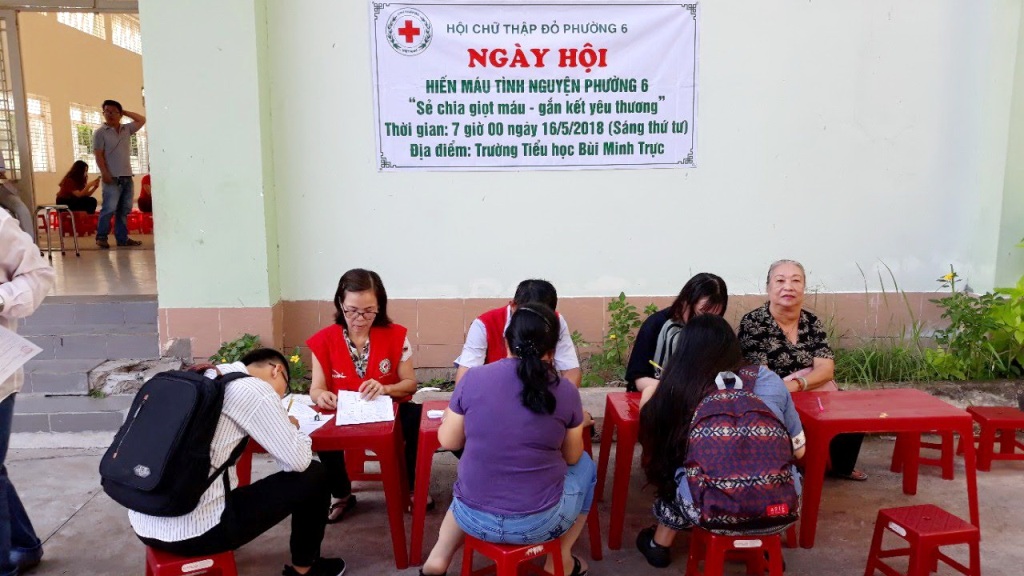 Sáng 16/5, Hội Chữ thập đỏ Phường 6 đã tổ chức Ngày hội hiến máu tình nguyện với thông điệp “Sẻ chia giọt máu - gắn kết yêu thương” được tổ chức tại trường tiểu học Bùi Minh Trực.