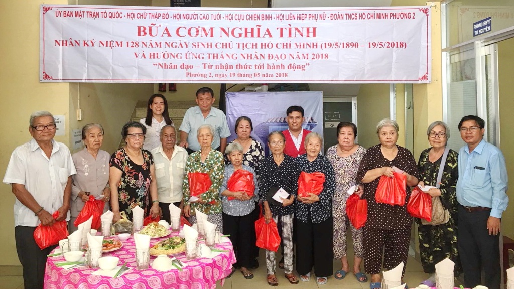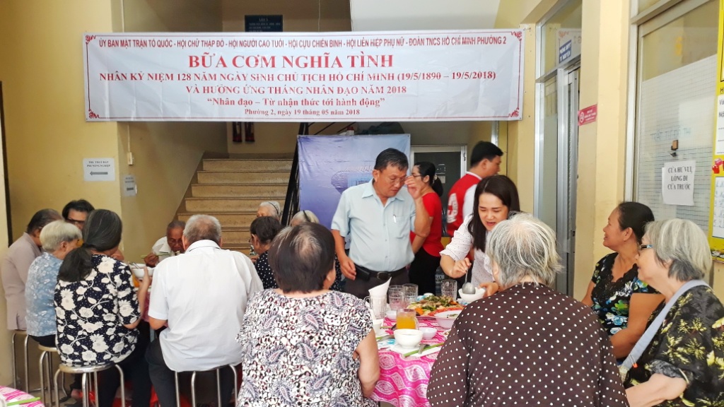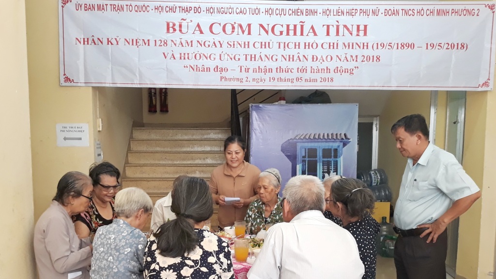 Sáng ngày 19/5/2018, tại Ủy ban nhân dân phường 2, Ủy ban Mặt trận Tổ quốc Việt Nam Phường 2 phối hợp với Hội Chữ Thập đỏ, Hội Người Cao tuổi, Hội Cựu Chiến binh, Hội Liên hiệp Phụ nữ, Đoàn TNCS Hồ Chí Minh Phường 2 tổ chức Bữa cơm nghĩa tình nhằm thiết thực chào mừng 128 năm ngày sinh Chủ tịch Hồ Chí Minh (19/5/1890 - 19/5/2018) và hưởng ứng tháng nhân đạo năm 2018 với chủ đề “Nhân đạo - Từ nhận thức đến hành động”. Đến dự có ông Lê Thanh Tú - Ủy viên Ban Thường vụ Đảng ủy, Chủ tịch Ủy ban Mặt trận Tổ quốc Việt Nam Phường 2; bà Đoàn Thị Thanh Tuyền - Đảng ủy viên, Phó Chủ tịch Ủy ban nhân dân Phường 2; Trưởng (Phó) các tổ chức đoàn thể; cán bộ, công chức UBND Phường 2 và 20 cụ già neo đơn có hoàn cảnh khó khăn trên địa bàn phường.