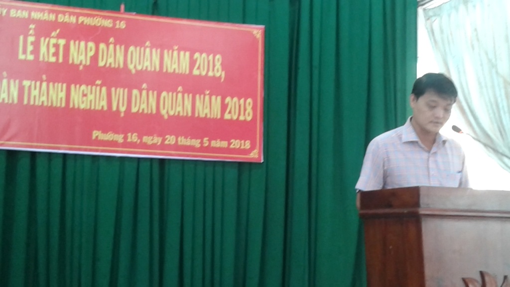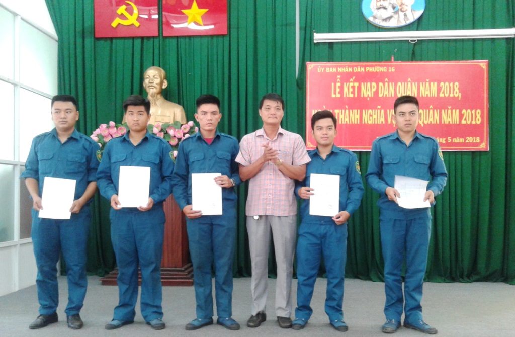 Sáng ngày 20/5, tại hội trường, Ủy ban nhân dân Phường 16 tổ chức Lễ kết nạp dân quân năm 2018, hoàn thành nghĩa vụ dân quân năm 2018. Đến dự lễ có ông Nguyễn Thành Nam, Phó Bí thư, Chủ tịch Ủy ban nhân dân phường; ông Trương Hồng Sơn, Đảng ủy viên, Chủ tịch Ủy ban Mặt trận Tổ quốc Việt Nam phường; ông Nguyễn Tấn Thành, Đảng ủy viên, Chỉ huy trưởng Ban Chỉ huy Quân sự phường; đại diện các đoàn thể phường, khu phố và các bạn dân quân.