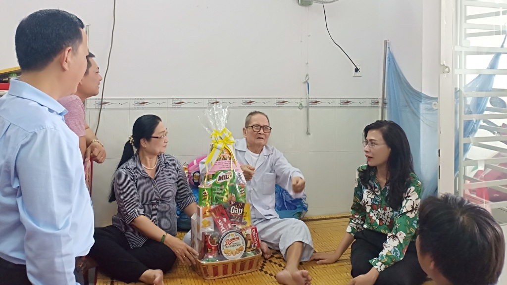 Đ/c Nguyễn Thị Thu thăm hỏi cụ Nguyễn Văn Truyện