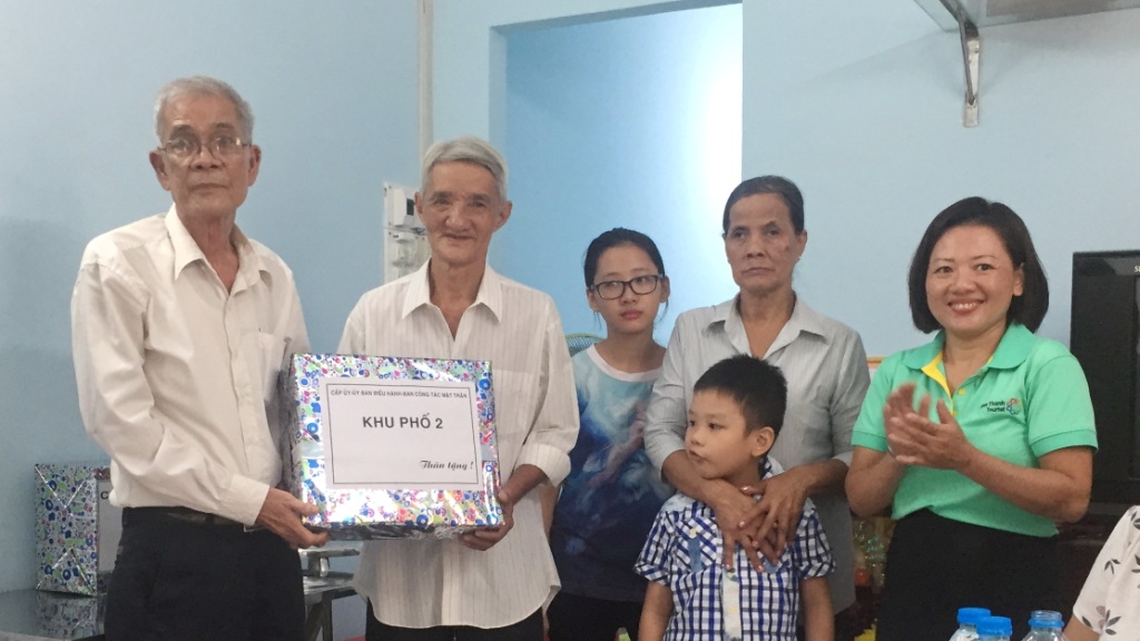 Đại diện đơn vị tài trợ và khu phố trao tặng quà