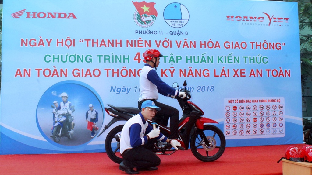 Với mục đích tạo sân chơi lành mạnh, bổ ích cho các bạn đoàn viên, hội viên, thanh niên và nhân dân trên địa bàn phường, nâng cao ý thức chấp hành Luật giao thông và tập huấn kỹ năng lái xe an toàn khi tham gia giao thông. Sáng ngày 10/6/2018 tại Trường tiểu học Lý Thái Tổ, Đoàn TNCS Hồ Chí Minh – Hội Liên hiệp Thanh niên Phường 11 phối hợp Công ty TNHH HEAD Honda Hoàng Việt – Chi nhánh 4 tổ chức Ngày hội Thanh niên với văn hóa giao thông, tập huấn kiến thức an toàn giao thông, kỹ năng lái xe an toàn và trải nghiệm cuộc thi lái xe tiết kiệm nhiên liệu, thu hút hơn 200 lượt người tham dự.