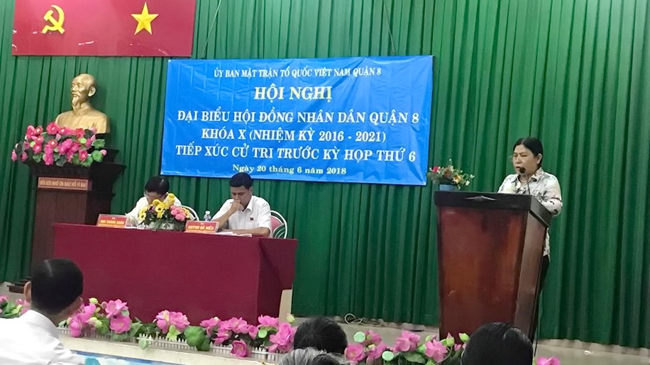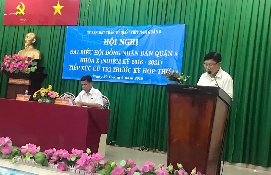 Tối ngày 21 tháng 06 năm 2018 tại Hội trưởng Ủy ban Nhân dân Phường 3 Quận 8. Ban Thường trực Ủy ban Mặt trận Tổ Quốc Quận 8 tổ chức tiếp xúc giữa Đại biểu Hội đồng nhân dân Quận 8 với cử tri Phường 3 trước kỳ họp thứ 6 Hội đồng nhân dân Quận 8 khóa X, nhiệm kỳ 2016 – 2021.