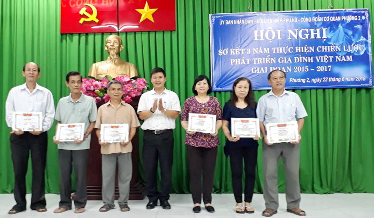 Phường 2 có 01 Ban Chỉ đạo công tác gia đình phường, 07 Nhóm phòng, chống bạo lực gia đình, 07 địa chỉ tin cậy ở cộng đồng, 01 CLB gia đình hạnh phúc, 01 CLB gia đình nuôi dạy con tốt, 01 CLB gia đình phát triển bền vững. Trong 3 năm qua, Phường 2 đã kiện toàn, bổ sung các thành viên Ban Chỉ đạo công tác gia đình phường và Nhóm phòng, chống bạo lực gia đình 07 khu phố để góp phần hoàn thành tốt các mục tiêu, chỉ tiêu của chiến lược phát triển gia đình Việt Nam trên địa bàn phường. Do đó, trong hội nghị này, nhằm trân trọng và biểu dương những cá nhân đã làm tốt nhiệm vụ của Nhóm phòng, chống bạo lực gia đình tại 7 khu phố, góp phần cùng với Ban Chỉ đạo gia đình phường hoàn thành nhiệm vụ trong việc thực hiện Chiến lược phát triển gia đình Việt Nam trên địa bàn phường, Ban Chỉ đạo gia đình phường đã đề xuất Chủ tịch UBND phường khen thưởng đối với 07 cá nhân (mỗi khu phố 01 cá nhân).