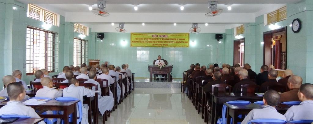 Lãnh đạo Thành phố, quận và các vị chức sắc Phật giáo tham dự Hội nghị tuyên truyền.