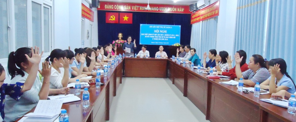 Trong 6 tháng đầu năm 2018, Ban Chấp hành Hội Liên hiệp Phụ nữ Quận đã phát huy vai trò chủ động, sáng tạo triển khai thực hiện có hiệu quả các nhiệm vụ trọng tâm của Hội gắn với hoàn thành cơ bản các nhiệm vụ chính trị của địa phương; tuyên truyền vận động cán bộ, hội viên, phụ nữ trong Quận thực hiện tốt nhiệm vụ công tác Hội năm 2018 nhất là công tác phối hợp các ban ngành đoàn thể trong quận. Hội nghị đã thông qua một số hoạt động trọng tâm 6 tháng cuối năm 2018, tập trung việc dạy nghề cho hội viên, chăm lo và hỗ trợ hội viên phụ nữ có hoàn cảnh khó khăn, đồng thời đẩy mạnh thực hiện phong trào thi đua “Phụ nữ tích cực học tập, lao động sáng tạo, xây dựng gia đình hạnh phúc” và 2 cuộc vận động “Rèn luyện phẩm chất đạo đức: Tự tin, tự trọng, trung hậu, đảm đang” và “Xây dựng gia đình 5 không, 3 sạch”.