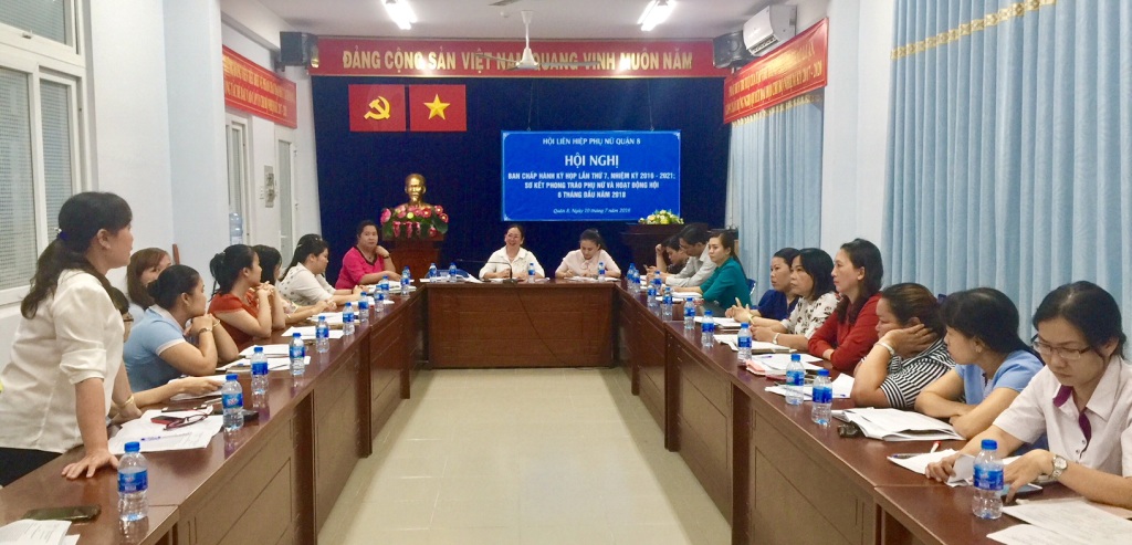 Chiều ngày 10 tháng 7 năm 2018 Hội Liên hiệp Phụ nữ Quận 8 tổ chức Hội nghị Ban Chấp hành kỳ họp lần thứ 7 nhiệm kỳ 2016 – 2021, sơ kết phong trào phụ nữ và hoạt động Hội 6 tháng đầu năm 2018. Đến tham dự có chị Nguyễn Thị Nguyệt Ánh – UVTV, Trưởng Ban Tuyên giáo Hội Liên hiệp Phụ nữ Thành phố; đồng chí Thái Thanh Nam – Phó Trưởng Ban Tổ chức Quận ủy Quận 8; đồng chí Nguyễn Thị Hồng Cẩm – Chuyên viên Ban Dân vận Quận ủy Quận 8, cùng các chị Ủy viên Ban Thường vụ, Ủy viên Ban Chấp hành Hội Liên hiệp Phụ nữ Quận 8 nhiệm kỳ 2016 – 2021.