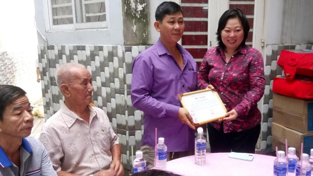 Bà Trần Thị Thu Thủy – Phó chủ tịch Uỷ ban Mặt trận Tổ quốc Quận 8 – trao thư cảm ơn cho đơn vị tài trợ.