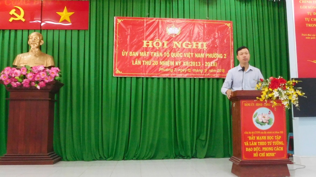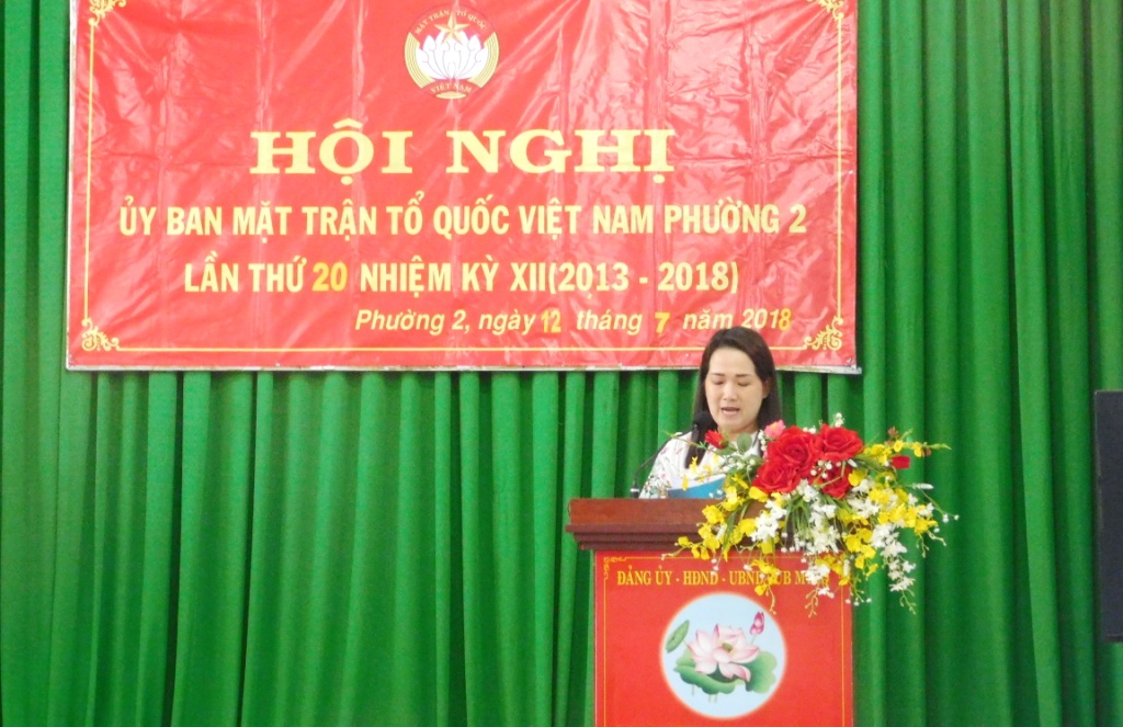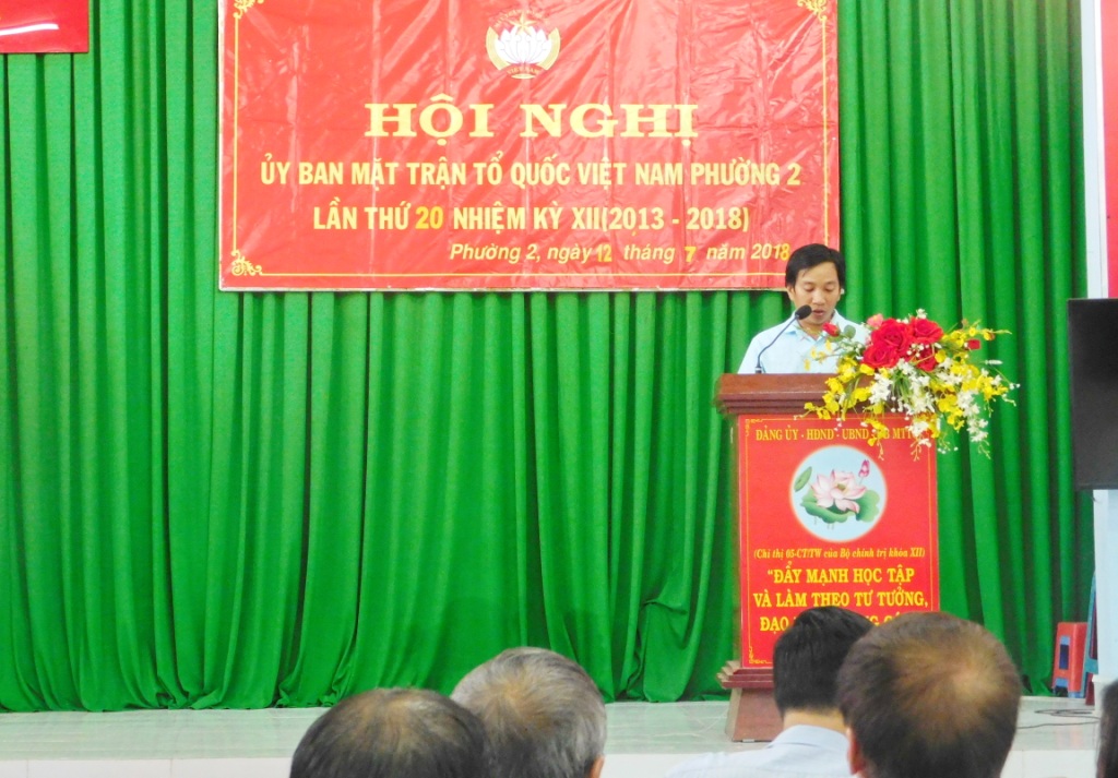 Tại Hội nghị, các đại biểu đã nghe đại diện Ban Thường trực Ủy ban Mặt trận Tổ quốc Việt Nam phường 2 thông qua dự thảo báo cáo công tác Mặt trận 6 tháng đầu năm 2018 và Chương trình phối hợp thống nhất hành động sáu tháng cuối năm 2018.