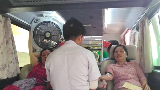 Chi hội trưởng phụ nữ khu phố 3 tham gia hiến máu.