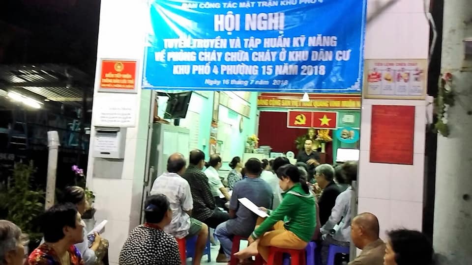 Tối ngày 16 tháng 7 năm 2018, Ban Công tác Mặt trận khu phố 4 Phường 15 tham mưu cấp ủy, phối hợp Ban Điều hành khu phố tổ chức tuyên truyền và tập huấn về kỹ năng Phòng cháy, chữa cháy ở khu dân cư.