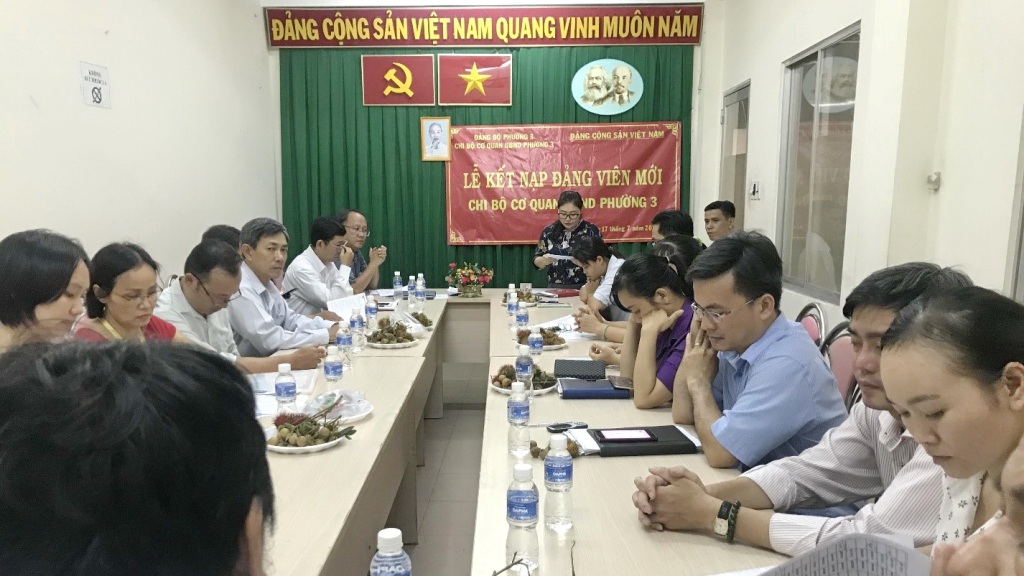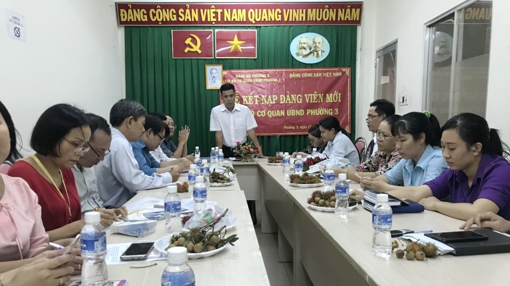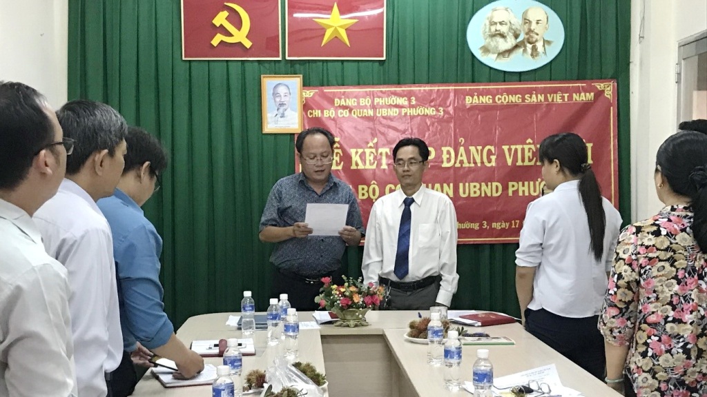 Chiều ngày 18 tháng 7 năm 2018 tại Phòng họp số 1 – UBND Phường 3. Đảng bộ Phường 3 tổ chức lễ kết nạp Đảng viên mới Chi bộ Cơ quan UBND Phường 3 cho quần chúng ưu tú Lê Mộng Bảo.