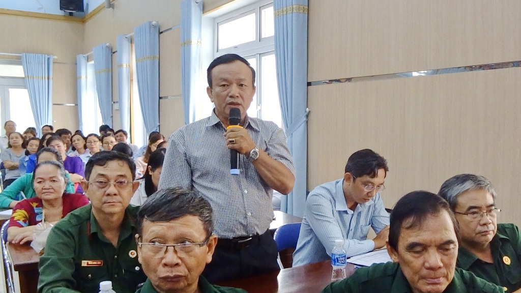 Cử tri phát biểu ý kiến trong hội nghị.